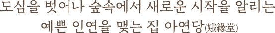 당신의 결혼식을 완성하는 프리미엄 웨딩 하우스 아연당이